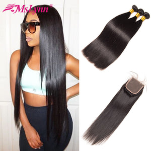 Hair Bundles With Closure Indian Human Straight Hair 3 Bundles