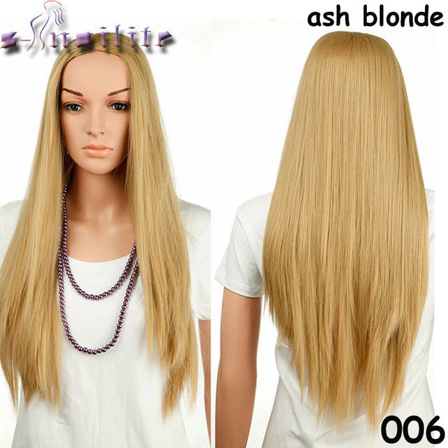 S-noilite Real Natural Ladies 25" Long Straight Half Wig Heat Resistant Black Brown Blonde Synthetic Hair Wigs for human - X-scape Store