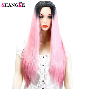 SHANGK Long Straight Ombre Pink Heat Resistant Synthetic Two Tone Wigs For Women 26 inch