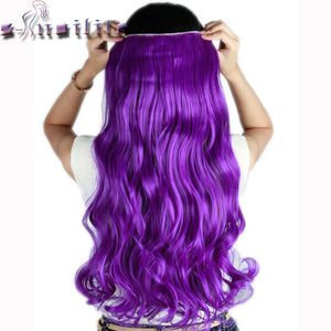 S-noilite 24 inches Curly Clip in Full Head Hair Extensions One Piece 5 Clips for human Cosplay Synthetic Hair Red Pink Purple